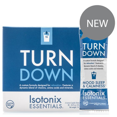 Our new Isotonix Essentials Turn Down is a custom formula designed for people who need a dose of relaxation. Each Turn Down packet helps enhance and stabilize your mood, promote mental clarity and support a healthy sleep quality.